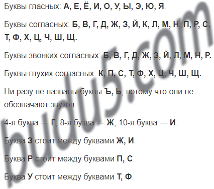 Прочитай в алфавитном порядке все буквы гласных, все буквы согласных, все буквы, которые обозначают звонкие согласные звуки, глухие согласные звуки. Какие буквы ты не назвал ни разу? Почему?