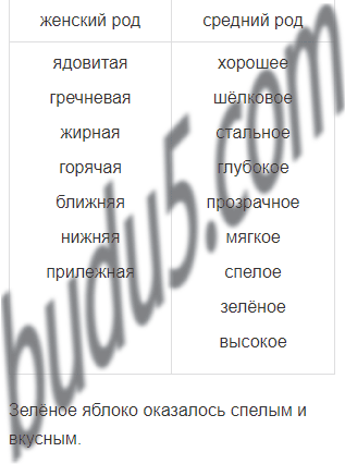 1. Выпиши прилагательные женского и среднего рода в два столбика.