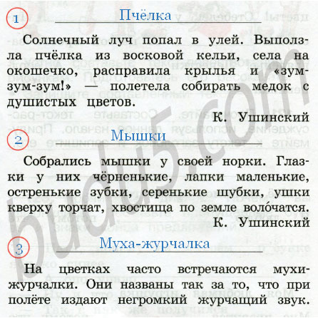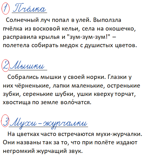 Прочитайте. Обозначьте текст-повествование цифрой 1, текст-описание цифрой 2, текст-рассуждение цифрой 3. Придумайте к каждому тексту заголовок.