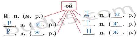 В каком падеже и в каком роде у имён прилагательных может быть данное окончание? Заполните пропуски в схеме.