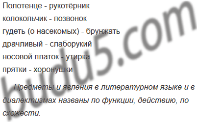 Подберите к диалектным словам (правый столбик) общеупотребительные синонимы. Подумайте, по какому признаку названы предметы и явления в литературном языке и народных говорах.