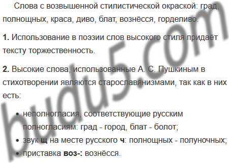 2. Докажите, что высокие слова в стихотворении А. Пушкина являются старославянизмами. Используйте материал, данный на полях.