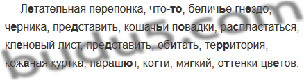 Л..тательная перепонка, что(то), белич(?)е гн..здо, ч..рника, пре..ставить, кошач(?)и п..вадки, ра..пластаться, кл..новый лист, пре..ставить, об..тать, те(р, рр)итория, кож..ная куртка, параш..т, ко..ти, мя..кий, о..тенки цв..тов.