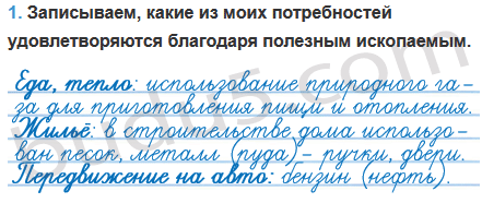 1. Подумай и запиши, какие из твоих потребностей удовлетворяются благодаря полезным ископаемым.