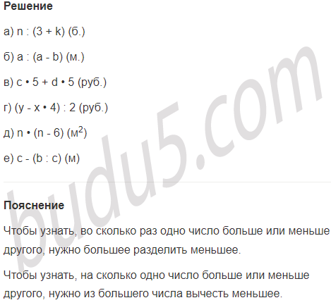е) Площадь прямоугольника b м2, а длина - с м. На сколько метров ширина прямоугольника меньше его длины?
