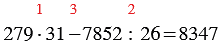 Составьте алгоритм вычисления выражения 279 • 31 - 7852 : 26 и найдите его значение.