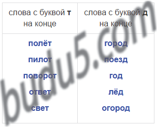 Распредели слова в группы в зависимости от того, какой буквой обозначен согласный в конце слова.