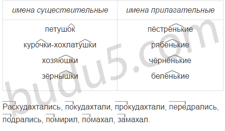 3. Спишите глаголы: раскудахтались, покудахтали, прокудахтали, передрались, подрались, помирил, помахал, замахал. Обозначьте приставки.